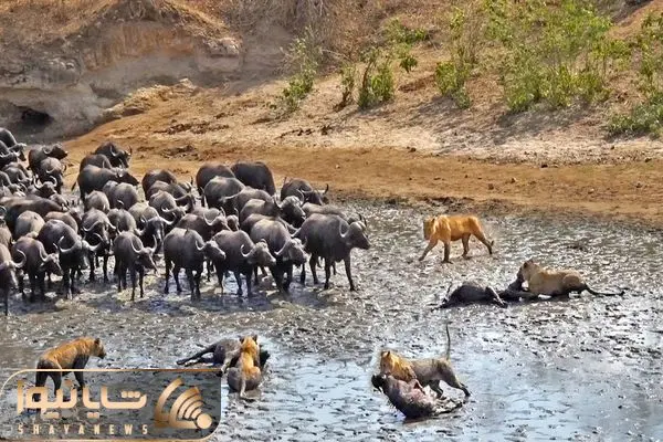 از جذابیت های حیات وحش؛ وقتی شیرها زدن به دل گله بوفالوها و حسابی دلی از عزا درآوردن!
