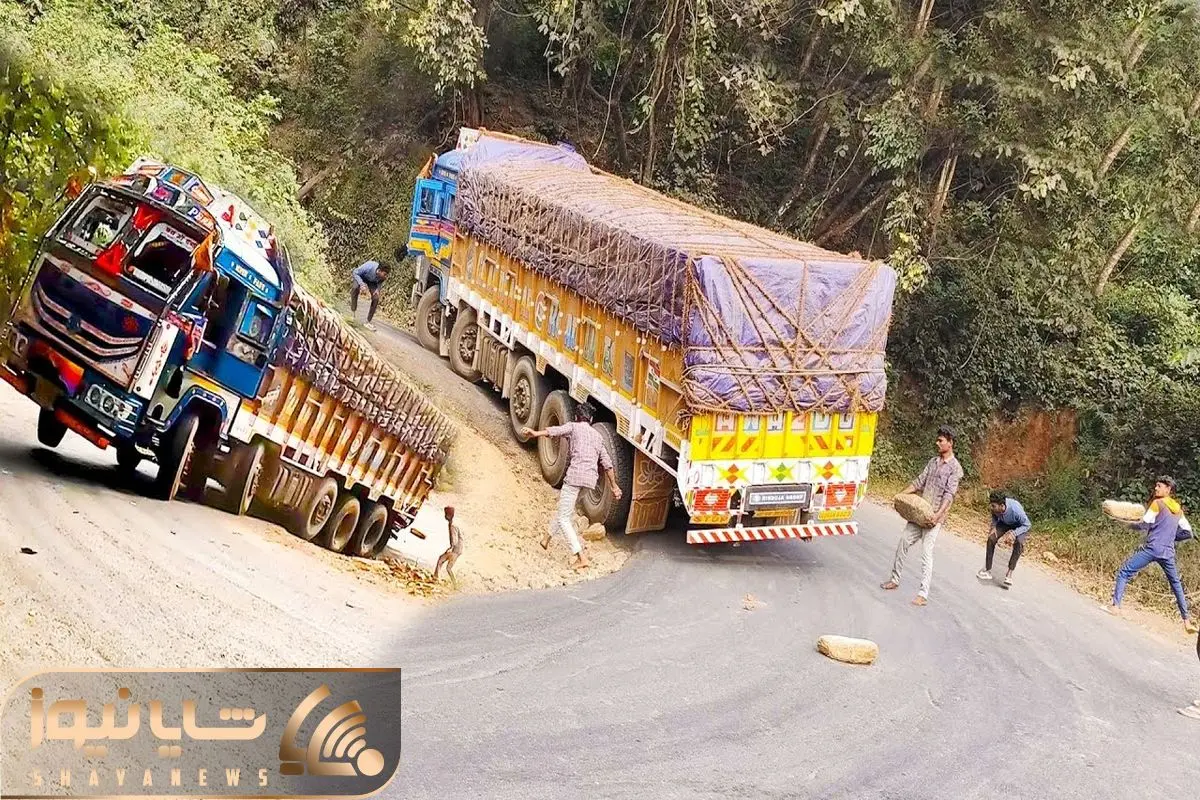 جا به جایی های جانکاه؛ ببینید این کامیون با بار سنگین چجوری تو سر بالایی گیر میکنه