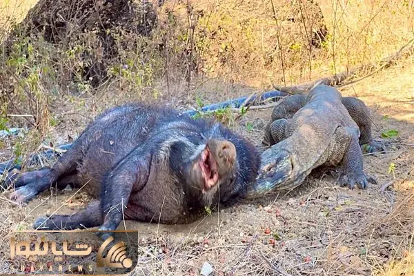 از جذابیت های حیات وحش؛ اژدهای کومودو یک شکار گنده جست که قشنگ یک هفته ش رو جوابه