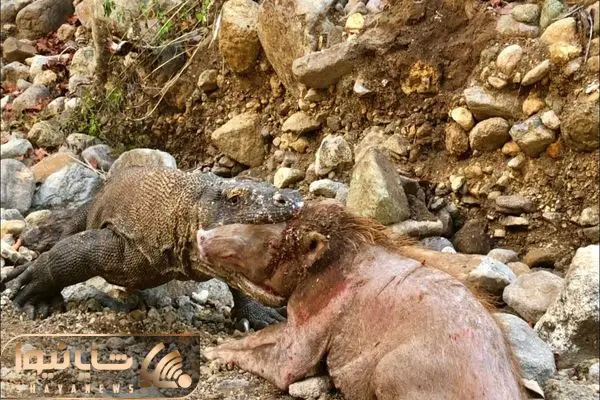 از جذابیت های حیات وحش؛ اژدهای کومودو چه ناجور گراز رو از کله اش شروع می کنه قوت دادن