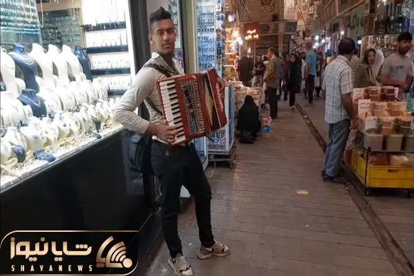 مطربی خیابانی؛ ببینید این پسر با ساز آکاردئونی گوشه بازار چه دلنواز می نوازه