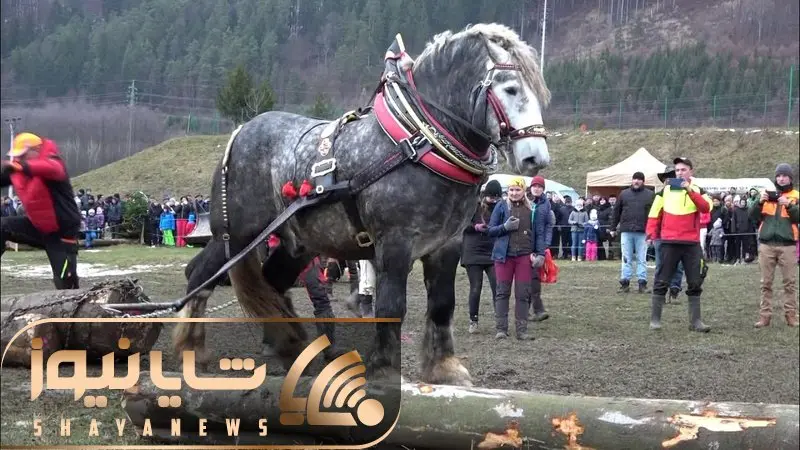 حیوانات غول جثه؛ ببینید این اسب تنومند با چه زور و قدرتی این کنده گنده هارو می کشه