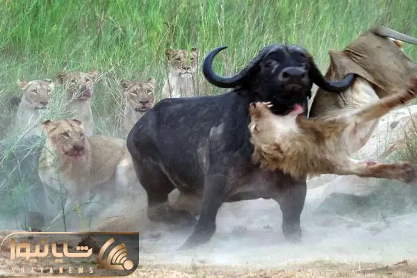 از جذابیت های حیات وحش؛ ببینید این بوفالوها چه درس عبرتی جانانه ای به شیر میدن