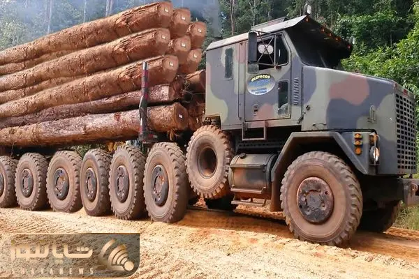 جا به جایی های جانکاه؛ راننده ها تریلی های پر چوب رو با چه زبردستی از جنگل عبور میدن