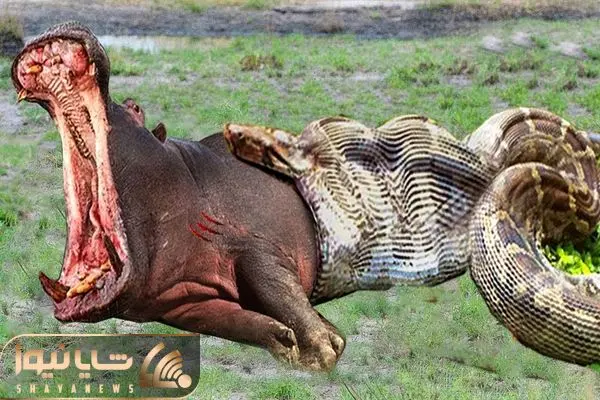 از جذابیت های حیات وحش؛ مار پیتون هوس کرد یک اسب آبی گنده رو برای ناهار بخوره