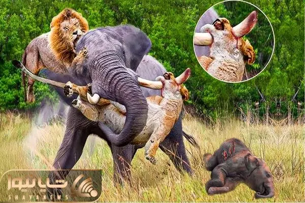 از جذابیت های حیات وحش؛ فیل واسه حفظ بچه اش با خرطوم و عاجش حسابی از خجالت شیر درمیاد