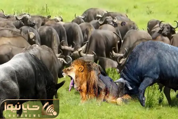از جذابیت های حیات وحش؛ ببینید گله بوفالوهای خشمگین شیر رو به چه فلاکتی می ندازن