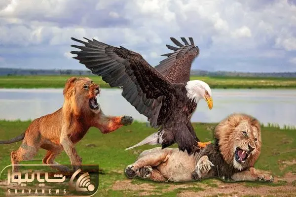 از جذابیت های حیات وحش؛ وقتی عقاب به خودش جرئت میده تا شیر شکار کنه البته توله اش