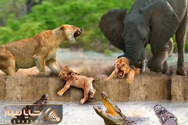 از جذابیت های حیات وحش؛ شیر فلجی که میخواد توله هاشو از دست فیل قلدر نجات بده