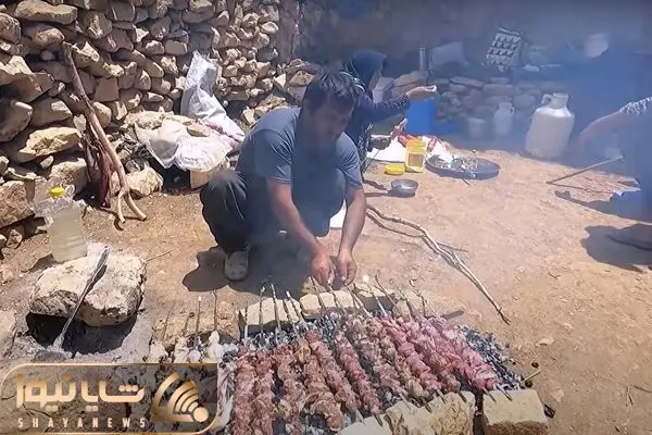 غذای عشایری؛ ببینید کباب چنچه و دنده کبابی که خانواده قششقایی واسه مهمون طبخ می کنن