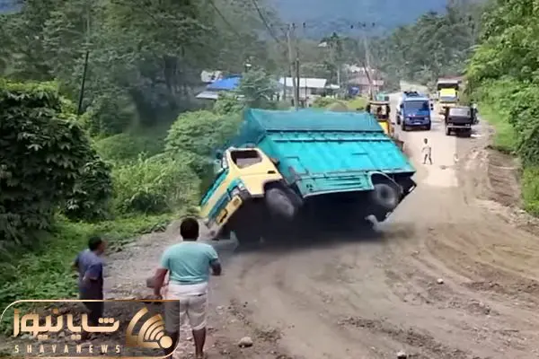 جا به جایی های جانکاه؛ کامیونی که یهو تو دنده عقب ترمز برید و بدجور با بارش چپه شد
