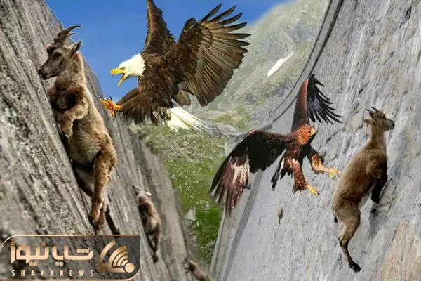 از جذابیت های حیات وحش؛ کمرکش کوه عقاب بز کوهی رو از زمین بلند کرد و کوبوند به صخره