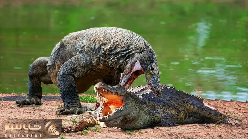 از جذابیت های حیات وحش؛ وقتی کومودو احمق میشه به جای فرار با کروکودیل می جنگه