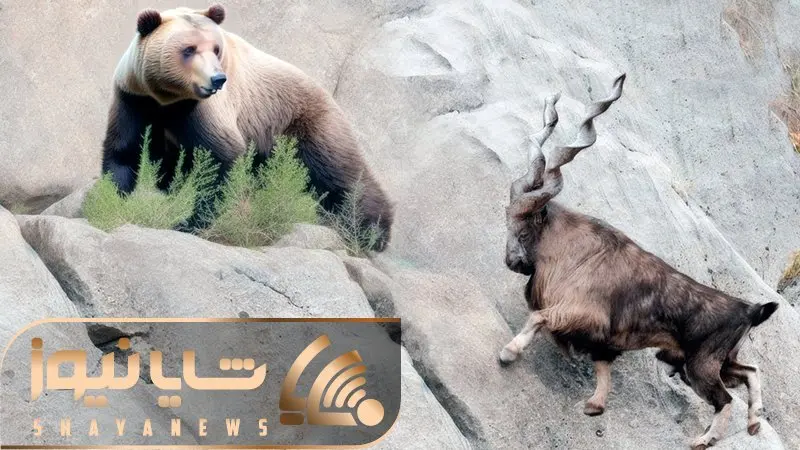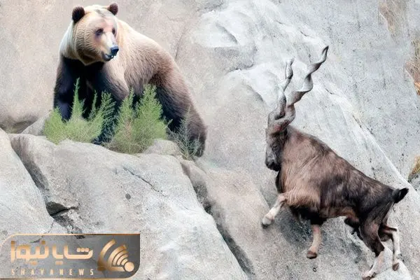 از جذابیت های حیات وحش؛ بز کوهی که لا به لای صخره مار میخوره و خرس ازش میترسه