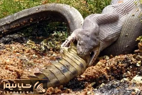 از جذابیت های حیات وحش؛ پیتون چه زوری میزنه تا بتونه کرکودیل زخمت رو قورت بده