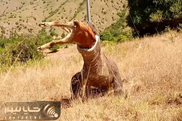 از جذابیت های حیات وحش؛ اژدهای کومودو بزی که شکار کرده بس بزرگه داره خفه میشه
