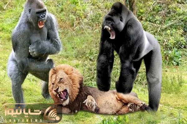 از جذابیت های حیات وحش؛ ببینید وقتی گوریل دیوانه میشه و می خواد شیر نفله کنه!