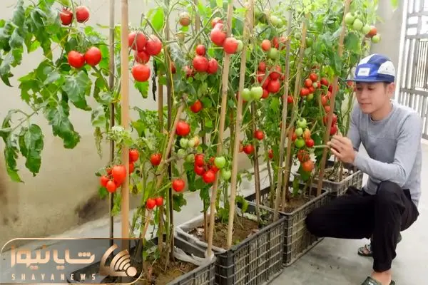 این آقا تو سبد میوه گوجه کاشته یه خروار محصول برداشت کرده.