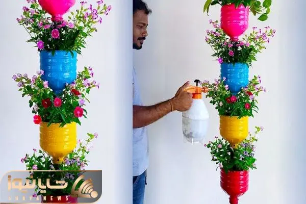 ایده های خلاقانه؛ ببین چقدر راحت با بطری های پلاستیکی دوغ و نوشابه آویزه گل درست کرده