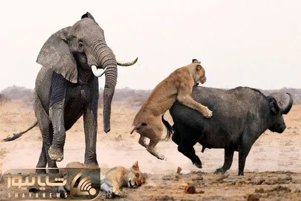 از جذابیت های حیات وحش؛ شیر داشت به بوفالو مسلط می شد که فیلمثل فرشته نجاتش داد