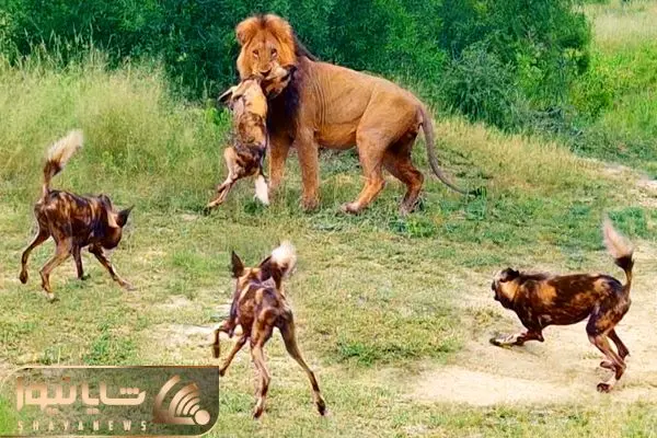 از جذابیت های حیات وحش؛ سگ ها واسه اینکه برادر وحشی شون از زیر دندون شیر بکشن بیرون