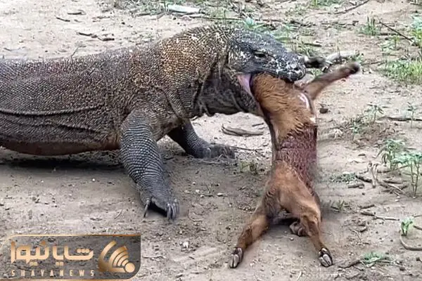 از جذابیت های حیات وحش؛ اژدهای کومودو بزی که اندازه خودش بود کرد دهنش و بلعید