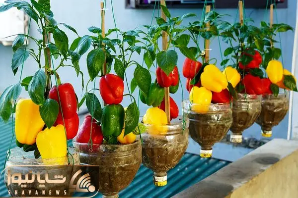 کاشت و برداشت خانگی؛ فلفل دلمه ای هایی که تو بطری های پلاستیکی نوشابه کاشت چه خوب شدن