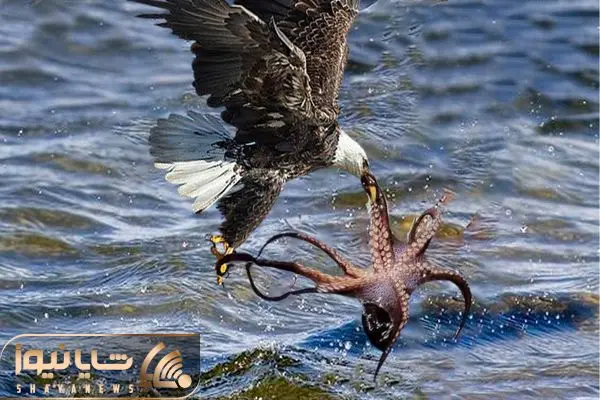 از جذابیت های حیات وحش؛ عقاب از آسمون شیرجه زد زیر آب و اختاپوس رو قاپید برد لونه اش
