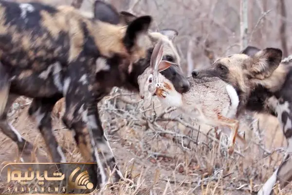 از جذابیت های حیات وحش؛ سگ های وحشی خرگوش رو از دو طرف کشیدنو به طرز زجرآوری کشتن