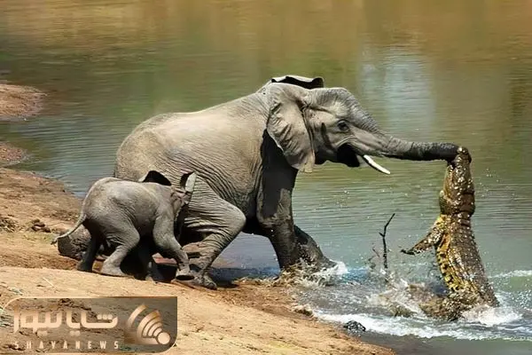 از جذابیت های حیات وحش؛ کروکودیل جسور چسبید به جای حساس فیل تا شکارش کنه