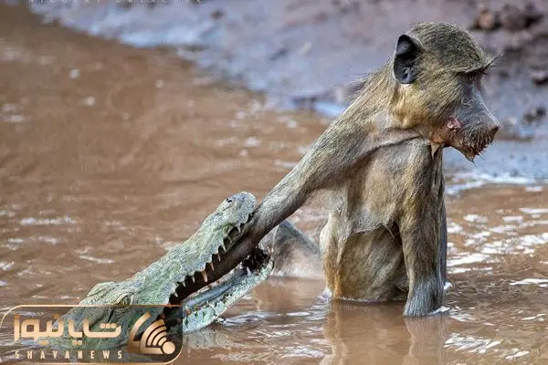 از جذابیت های حیات وحش؛ میمون کله خر واقعا زده به سرش با تمساح زمخت در افتاده