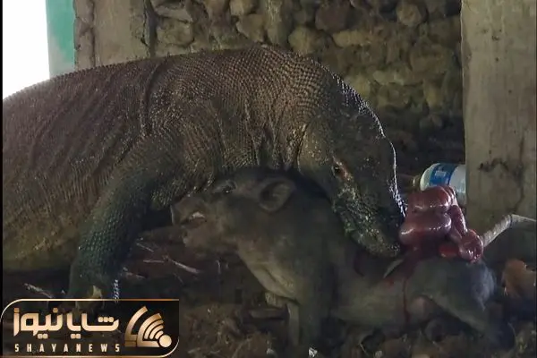 از جذابیت های حیات وحش؛ کومودو اینقدر محکم شکم گراز زنده فشار داد شکمش پوکید