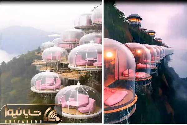 در این دو ویدیو دو سبک از خانههای شیشهای معلق را خواهید دید که روی صخرههای بلند تعبیه شده اند.