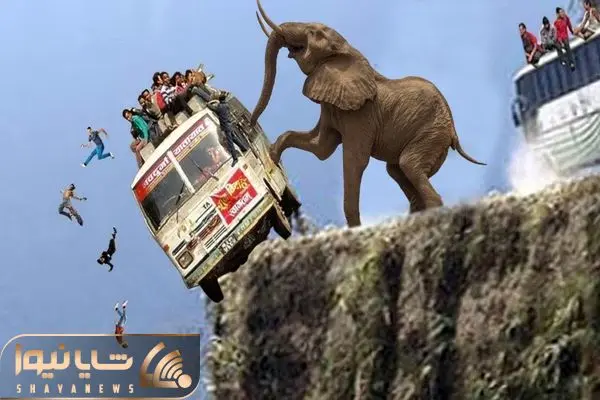 جا به جایی های جانکاه؛ حمله فیل به ون پر از مسافر مردم از پنجره خودشون پرت کردن پایین