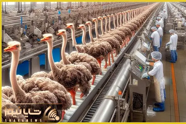 فرآوری شتر مرغ؛ پوست شتر مرغ و مثل کاغذ شکلات درسته میکَنن باهاش پالتو درست میکُنن