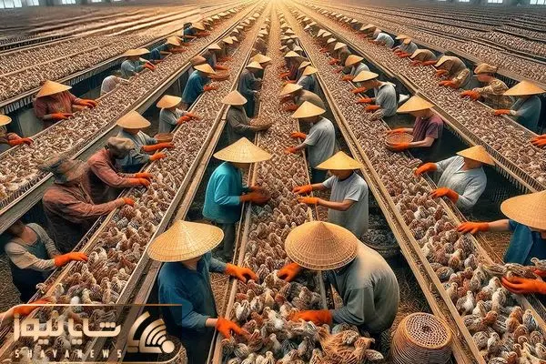 فرآوری بلدرچین؛ اول جوجه بلدرچینارو بزرگ میکنن بعد از گردن دار میزنن میذارن تو کوره