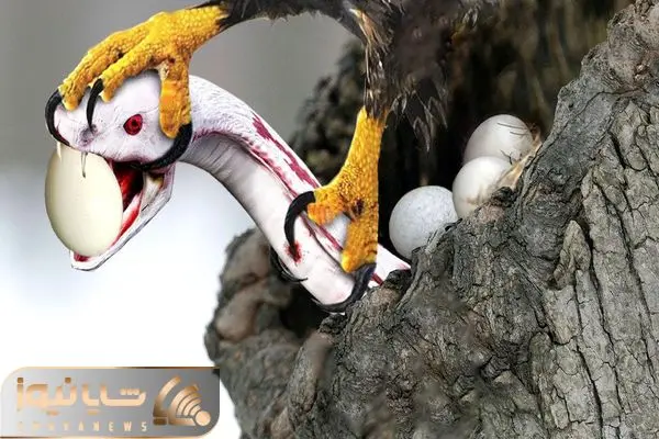 از جذابیت های حیات وحش؛ عقاب با منقار و چنگالاش مار پاره کرد تا تخم هاش نخوره