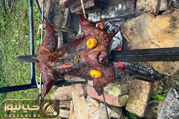 غذای محلی؛ شتر مرغ رو به سیخ میکشه پرت میکنه تو آتیش