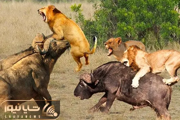 از جذابیت های حیات وحش؛ بوفالو تا دید شیر های ناکس رفیقشو زمین زدن رفت شل پلشون کرد
