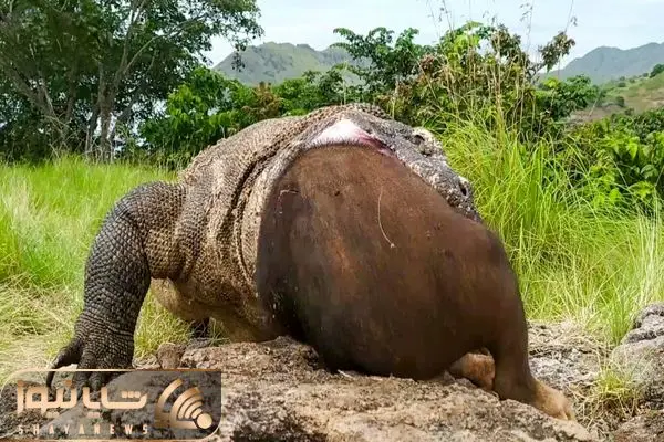 از جذابیت های حیات وحش؛ وقتی گراز گنده تو گلوی کومودو احمق گیر کرد بالا نیاره