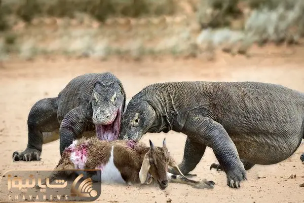 از جذابیت های حیات وحش؛ زهر چشم کومودو از گله بزها و یکی رو به دندون کشید دور میزنه