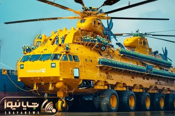 جا به جایی جانکاه؛ حمل بالگردی که تو آسمان کلی بار می بره با زحمت پشت تریلی