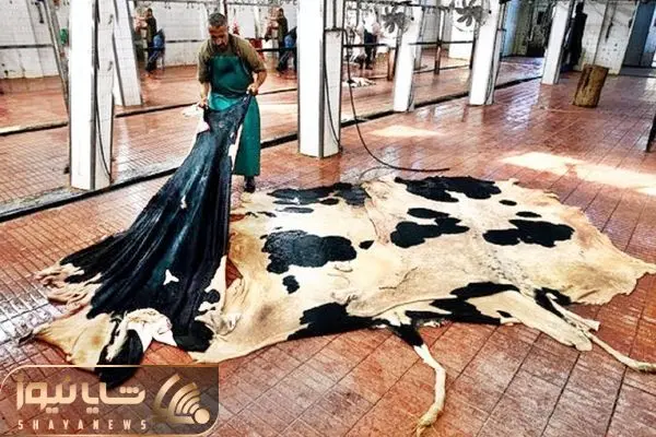 فراوری پوست گاو؛ خیلی مدرن و تمیز پوست گاو رو قلفتی میکنن و فرش میکنن کف زمین