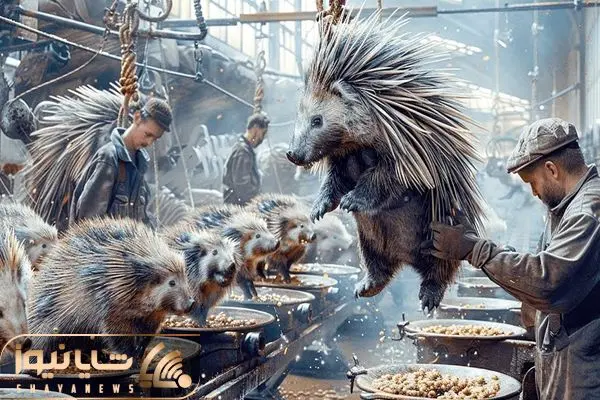 فراوری جوجه تیغی؛ خارپشت رو دونه دونه تیغ هاش رو می کنن تا بشه یه گوله گوشت لخت