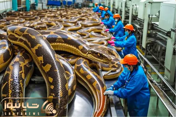 فرآوری مار پیتون؛ مارهای بزرگ به قطر لوله پولیکا میریزن رو میزه پوستش رو می کنن