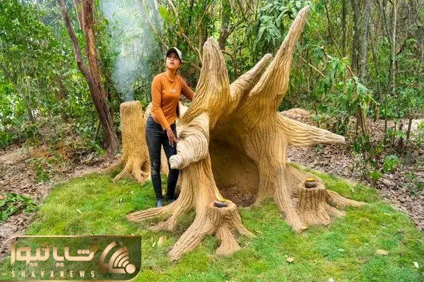 ایده های خلاقانه؛ خانومه تو جنگل یه خونه زیرزمینی واسه خودش ساخته ورودیش شکل شیپوره