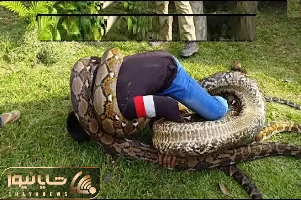 در این ویدیو ببینید که پیتون غول پیکر چگونه دور یک انسان پیچیده و قصد بلع او را دارد.