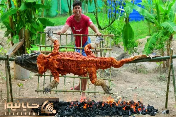 کباب کردن کروکودیل؛ تمساح رو تو تنور کباب می کنن و مثل رون بره میکشن به دندون