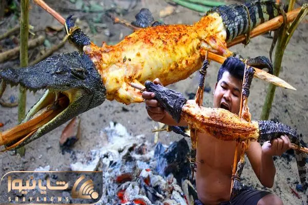 غذاهای غول پیکر؛ آشپز پوست شکم کروکودیل غولو جدا میکنه به سیخ میکشه کباب شه