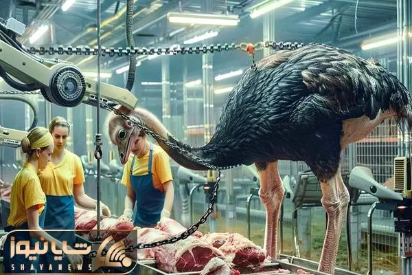 فرآوری شتر مرغ؛ شتر مرغ های بزرگ رو پروار میکنن تا بشن اندازه شتر با کلی پر فاخر